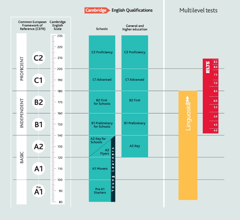 Los exámenes de Cambridge Englishcumplen estrictamente los requisitos establecidos por el Marco Común Europeo de Referencia para las Lenguas (MCERL o CEFR de sus siglas en Inglés), un estándar internacional que sirve como norma homogénea a la hora de poder medir el nivel de comprensión y expresión, tanto oral como escrita, de un individuo en una lengua concreta. Hecho que le otorga un carácter internacional a las titulaciones oficiales ofrecidas por Cambridge English.